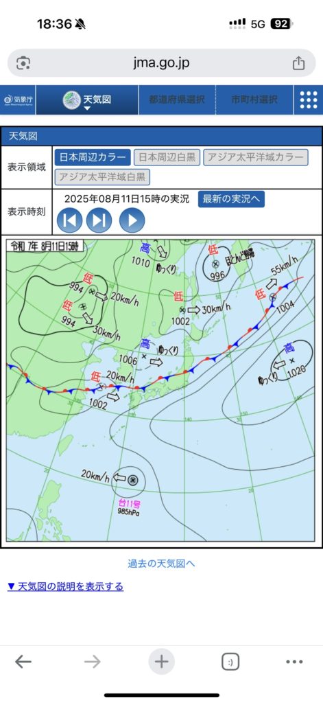 私はまだまだ初心者ですが、毎日天気図を確認し、実際の空と見比べることで、天候を読み解くスキルを磨いていきたいと思います。