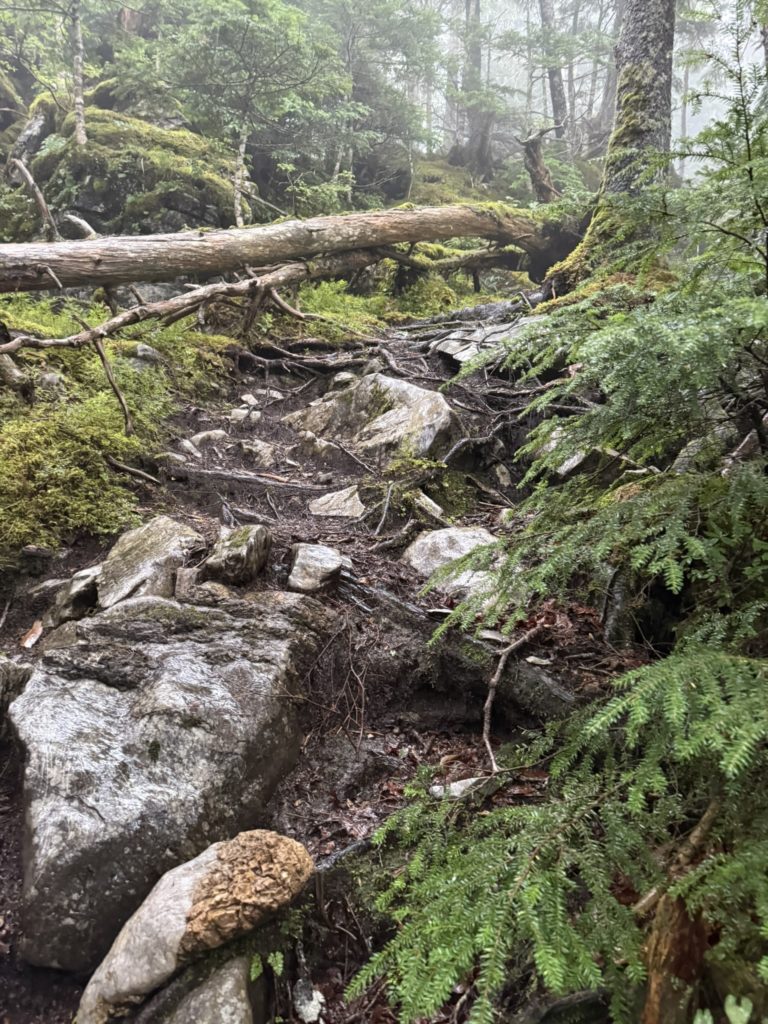コースタイム8時間の登りは想像以上に長く、豪雨の中での行動は過酷でした。